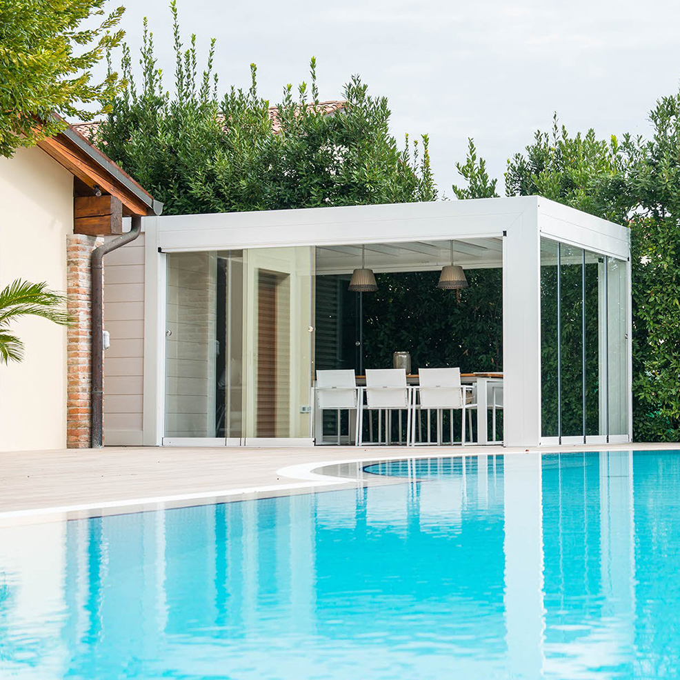 Un sistema di copertura da esterni versatile, in grado di soddisfare ogni esigenza di relax e protezione: Bioroll consente di gestire e filtrare il passaggio della luce solare più adatto per ogni momento della giornata, permettendo anche un’efficace ventilazione naturale e ricambio d’aria. Quando le lamelle sono totalmente chiuse, Bioroll protegge dalla pioggia, favorendo il deflusso dell’acqua lungo i bordi esterni della struttura.