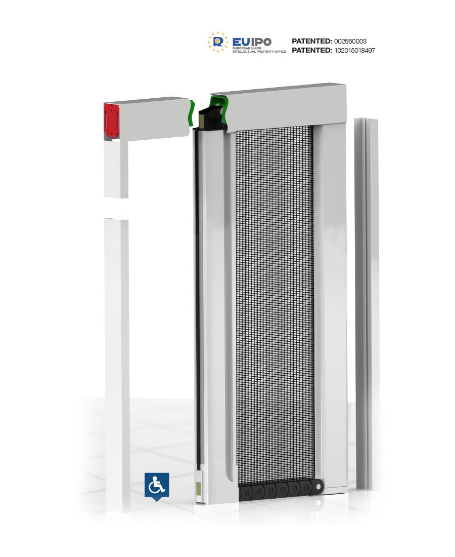 Elegante zanzariera ad avvolgimento laterale, ideale per porte-finestre. La presa ergonomica lungo tutto il profilo della barra maniglia, rende comodo e facile l’azionamento sia dall’interno che dall’ esterno. L’apertura e chiusura dell’anta, pur essendo dotata di molla, risulta molto controllata, senza causare avvolgimenti improvvisi e veloci. Questa caratteristica, unita all’assenza di barriere, rende il prodotto ideale per i vani di frequente passaggio.
